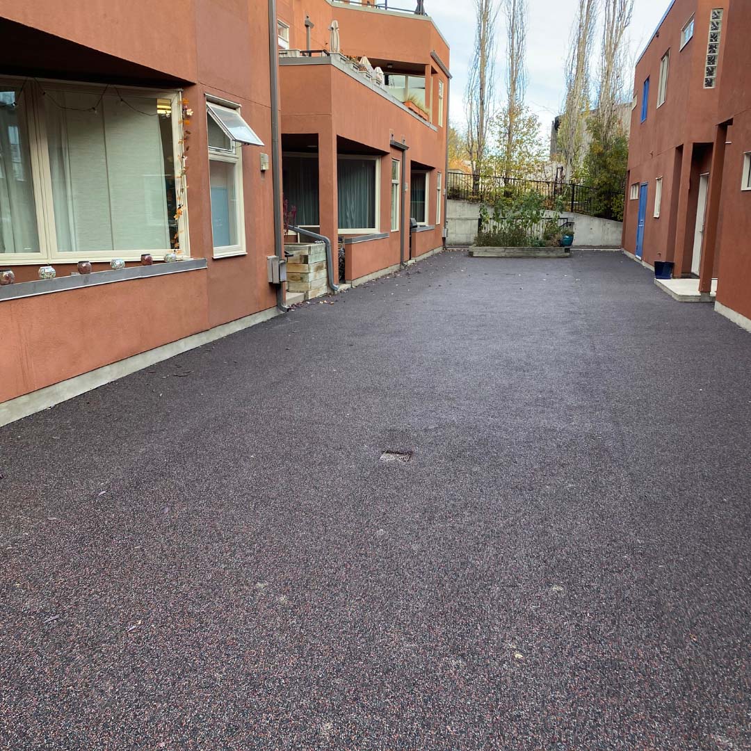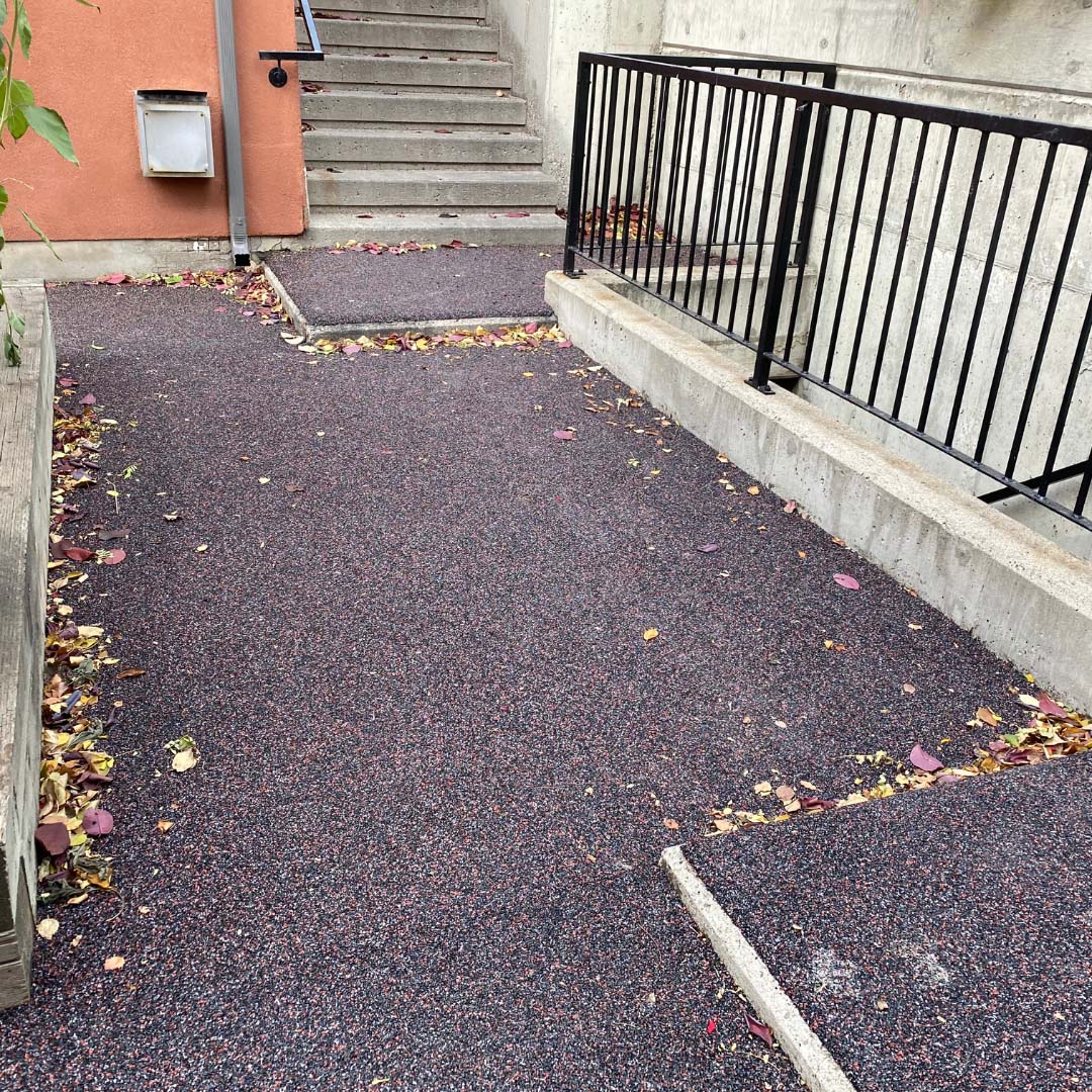 Yes. Our poured-in-place system is ideal for high-traffic common areas—lobbies, corridors, pool decks, balconies, rooftop terraces, bike rooms, and entry ramps—providing slip resistance, comfort underfoot, and a seamless, attractive finish.