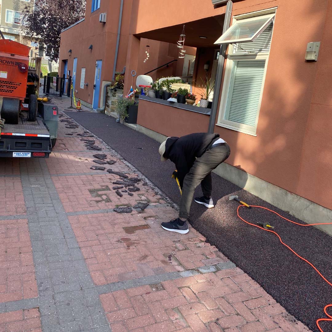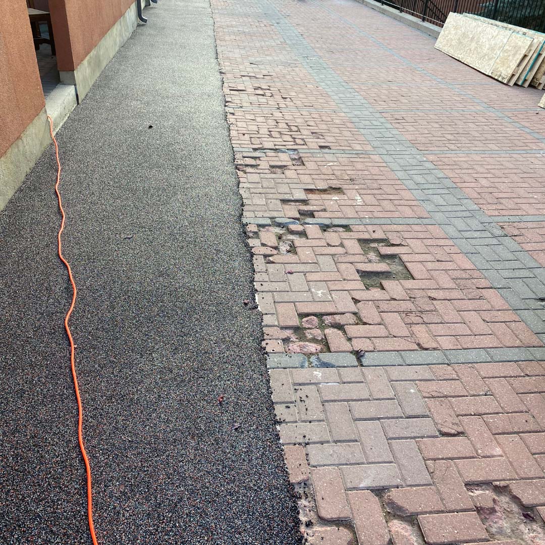 Absolutely. We install over prepared concrete, asphalt, or tile, filling hairline cracks and minor pitting. Low-profile thresholds, nosings, and edge trims create clean transitions at doors, elevators, and expansion joints while maintaining accessibility.